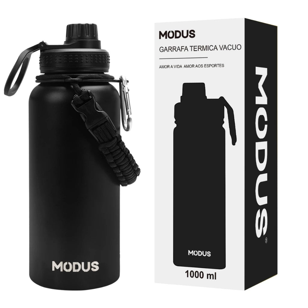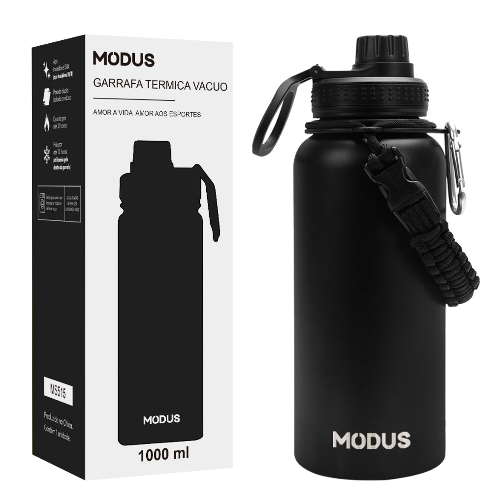 Modus Garrafa Térmica De Água Isolada 1000ml Quente & Frio De Aço Inox Com Alça