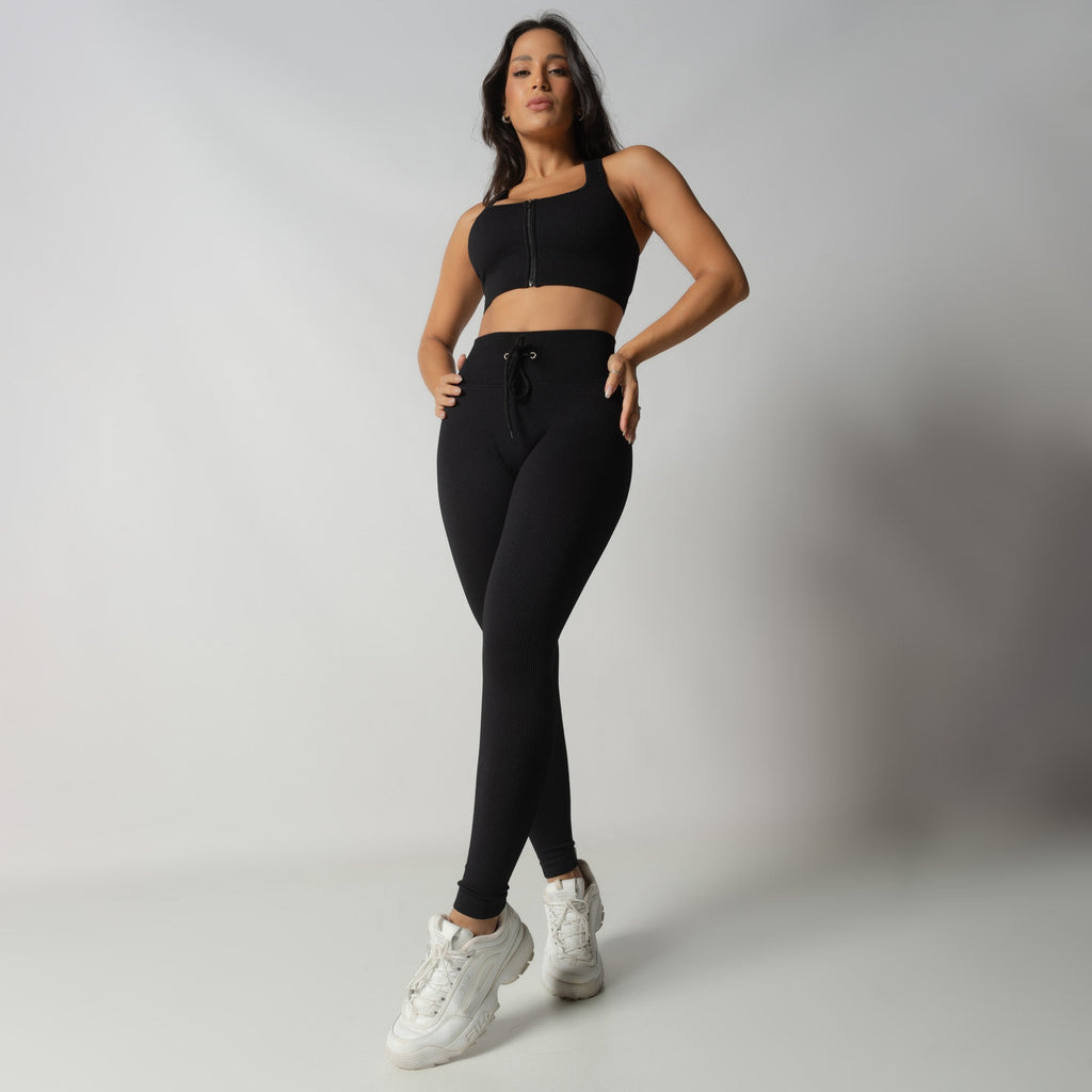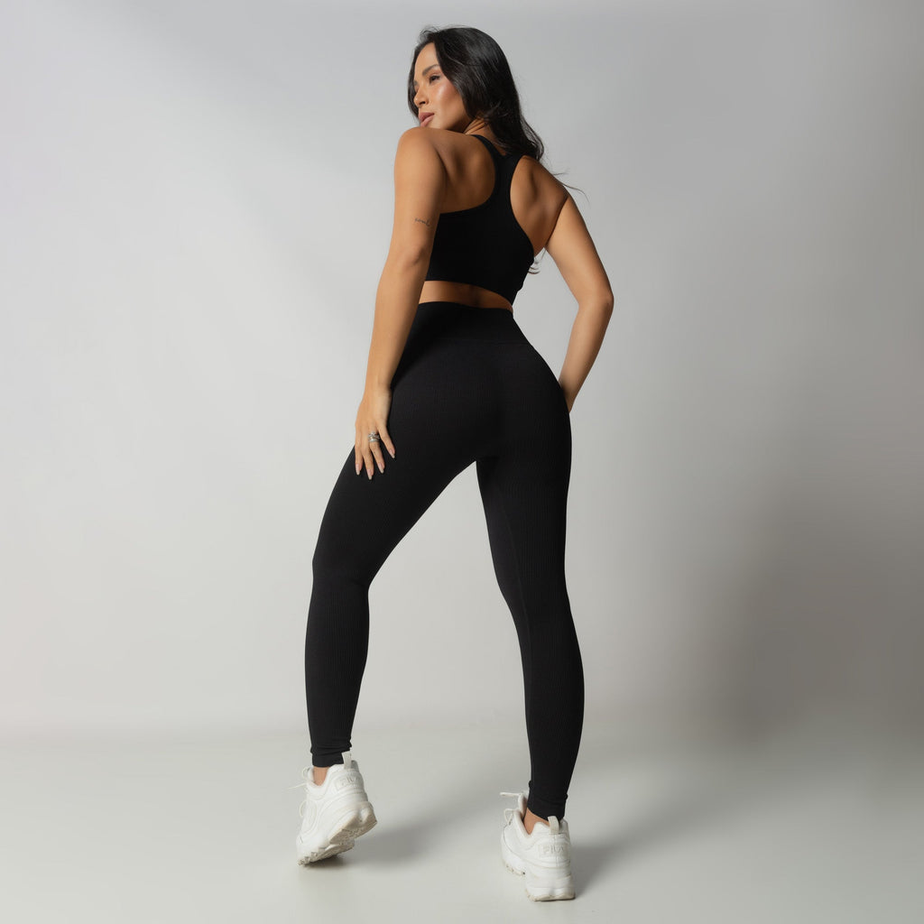 Conjunto Fitness Nadador Seamless Preto Canelado.