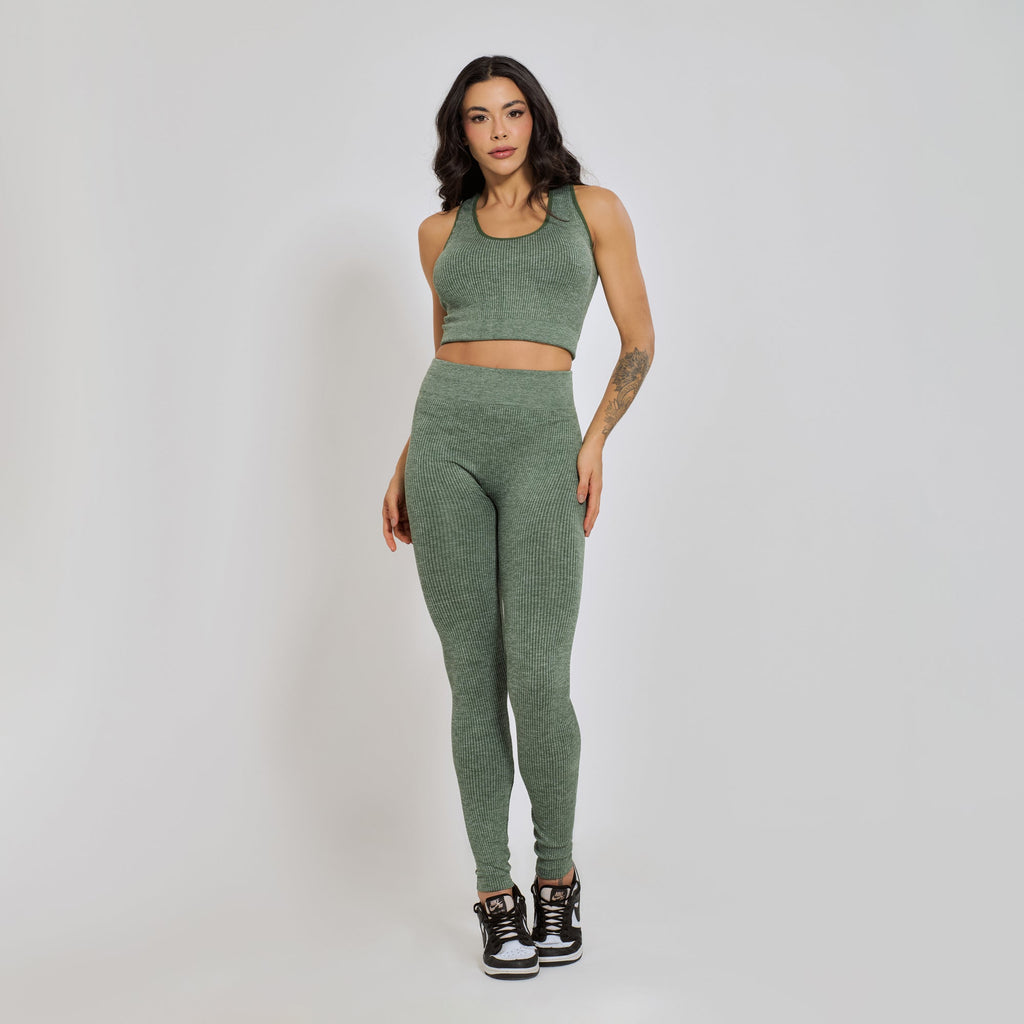 A cor verde traz uma proposta vibrante e moderna, ideal pra quem gosta de sair do básico e apostar em produções que se destacam. Para completar, combine o conjunto fitness sem costura com tênis brancos, jaqueta esportiva ou até mesmo uma t-shirt oversized pra montar visuais diferentes com a mesma peça — tudo com estilo e versatilidade.